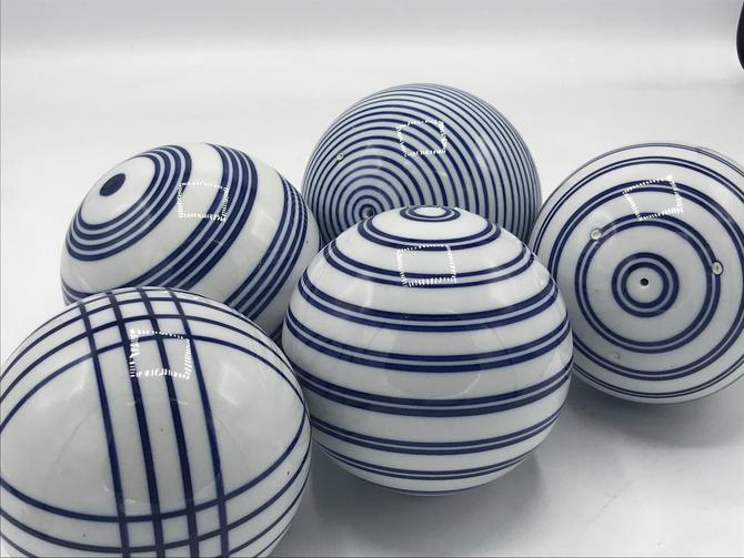 Chinoiserie cobalt blue & white ceramic carpet balls orbs lot of 4 w/basketfrom $49.99. Vtg set 5 blue & brown delft porcelain ceramic carpet balls home decor 3.1/4 . Also called carpet balls for use in the carpet ball game. Curious about how it's played? Man has actually real bochii balls (spelling unknown) and they are vintage and made of wood, nicely painted but not frivolously painted.